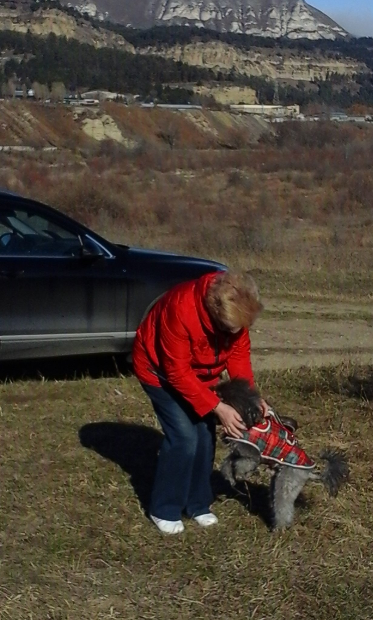 Nataliya, Koshatina, Спасибо , Мои Дорогие Девчонки за Добрые Пожелания Здоровья Нашему Лельке !!! Видно , организм его уже не может принимать овсянку на воде , индейку и воду - пошел второй месяц этой диеты ... Ночью спали с ним плохо , я наблюдала за ним , он всё места себе на кровати выискивал .... А утром сварила гречку , добавила немного хорошего домашнего топленого масла ( от настоящей коровы) и опять -таки свежую грудку индейки , еще всё теплое - поел с таким удовольствием , а тогда уже и мы позавтракали ... и поехали снова искать коробки ... и Нашли только в захалустье , недалеко от кладбищ - почтовое отделение , а там этих коробок пруд -пруди , синих ( как в прошлом году были ) всех размеров ... взяла 2 , а от Счастья пообещала этой девушке на почте - отправить посылки от нее .... Еще она сказала ,что просто надо чуть подождать и везде завезут эти коробки !!! По пути назад решили с Лелькой погулять без поводка - ветер страшный, аж свистит в ушах , мороз -1 , Кабан-Гора ,что над кладбищами , в снегу и тумане , а у нас Солнце ..... Сейчас скину фото , видны на них горы и дорога на Гору-Кольцу , заодно и Лапы фото на Горе-Кольцо и у въезда в Кисловодск .... сегодняшние фото правда плохо получились - муж снимал на телефон , а солнце слепит и еще Лель нахватался колючек -репейника ... Хотела скинуть видео сегодняшнее , где он скачет как Олень , но не скидывается .... |