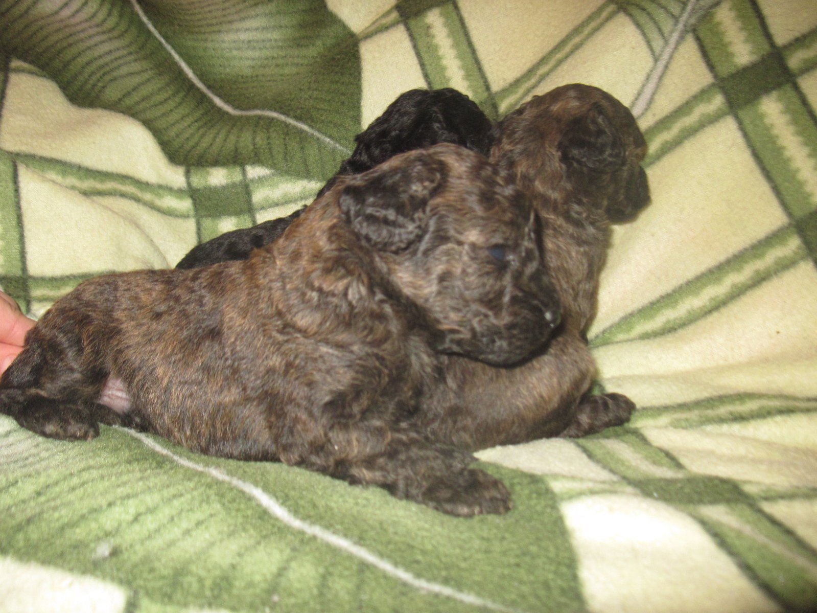 Dikovinka, а мне кажется что это один щен)внизу по младше вверху постарше...как такой окрас назвать незнаю...но такую собаку-правда не такую яркую стригла...у нее сначала черный вылез...потом рыжий почти ушел...но на длинных волосах оставались рыжие перья...потом черный начал цвести по принципу серебра...потом собака стала серебристой с палевыми кончиками волос...потом просто серебристой с белыми(грязно белыми )кончиками волос(это примерно лет в 8)