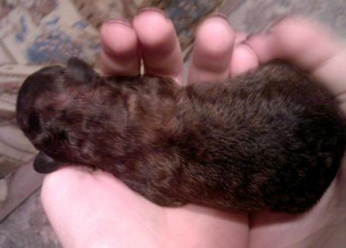 Стало ясно, что до выходных Даночка ждать не собирается. В 22. 35 родилась первая девочка, через 45 минут мальчик, а в 23. 45 - еще одна девочка. Детки маленькие и все ровненькие. Первая девчонка очень активная. Но интересно не только это: она родилась рыжая! Ну, то есть не абрикосовая, конечно, а, скорее, соболиного окраса с темной полосой на спине. Много-много лет назад ее мама Даша родила от этого же кобеля девочку с рыжим подпалом, которая к году перецвела в серебро, но у той полосы были только на боках, а эта - вся черно-рыжая. Очень интересно, что получится! |