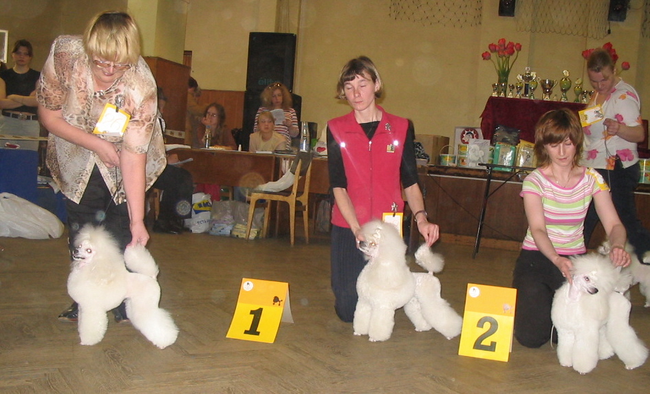 МАНЬКА ОБЛИГАЦИЯ ИЗ РУССКОГО ДВОРА Губанова Москва 1 отл КЧК ОТКРЫТЫЙ КЛАССИКА КСЕНИИ АРИАДНА Кошелева Москва 1 отл КЧК 2-я в окрасе МЕДНАЯ КОПЕЕЧКА ИЗ РУССКОГО ДВОРА Губанова Москва 2 отл ЧЕМПИОНЫ БЕЛЬ БИЖУ ЖЕНСКАЯ УЛОВКА Володина Москва Лучшая Сука 1-я в окрасе ЛПП Лучший той пудель выставки рез BIS Сравнение на Лучшую суку тоя белого окраса |