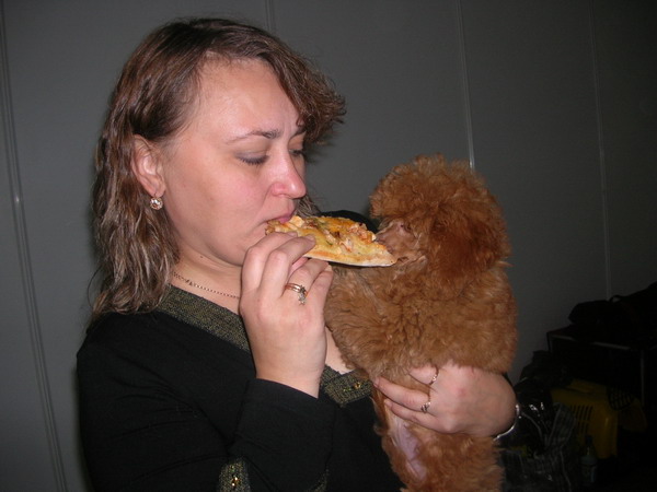 Смотрю у Санника на голове весьма пышный султан, берегите его , а то как начнёт девушка прореживать ;) :) Интересно, как быстро Тулипу станет Тулей или просто Улей? ;) Всем ещё раз большое-большое спасибо за добрые слова! Я почти не была в интернете эти дни, совершенно катастрофически занята и к тому же проблеммы всякие навалились. Надеюсь, на след. неделе будет побольше времени на интернет. Если не заметила чьего-то вопроса и не ответила - простите, не обижайтесь, а лучше - напомните :) Отвечаю про лак. НЕ ЗНАЮ! почему его можно тут. Вот можно и всё! На выставках вдоволь накашлялась, мне от этого лака просто дурно...... Япония всегда умеет как-то отвоевать-оговорить себе привелегии, видимо. У нас тут , например, разрешён красный окрас у пуделя. ДА-ДА!!! Пуделей с таким окрасом спокойно регистрируют как КРАСНЫХ! И в списке нестандартных окрасов, которых нужно избегать и которые в родухе печатаются со звёздочкой (звездочка обозначает, что окрас нестандартный) значатся только пятнистые, подпалые и тигровые. Фиона, обещание своё про клички помню. И обязательно выполню. после выходных. :) Aikenka добавил(а) [date]1170347110[/date]: Вспомнила, что видела вопрос про шерсть. Отвечаю :) С шерстью совершенно не делаю ничего особенного. Растёт само да и всё. Единственной дополнительной причиной такой длины вижу то, что собака в доме одна. Т.е., ей никто не выщипывает и не обдирает эти заманчивые колбаски на голове и ушах. Да и на прогулке у нас нет товарищей по росту, способных щипать за холку или поймать за топ. Все собачки в парке маленькие. Стася вдоволь с ними набегивается, при этом никто из них не успевает её ухватывать за "стратегические" места, ну разве что за заднюю лапу или за гриву снизу сбоку..... так это не страшно :) _______________________________________
