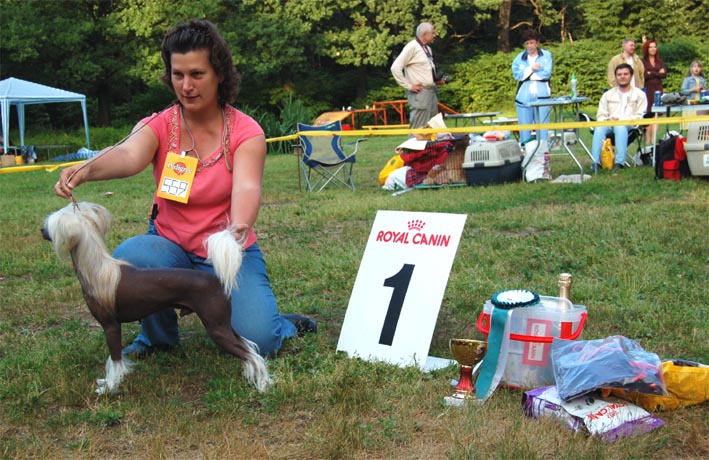 На выставке " Зенит лета-2007" всего было более 700 собак. Пуделей 25 и по-моему все были, несмотря на проливной дождь, как раз перед рингами пуделей. Но хватило пол-часа - солнышко заблистало, травка подсохла, настроение поднялось..