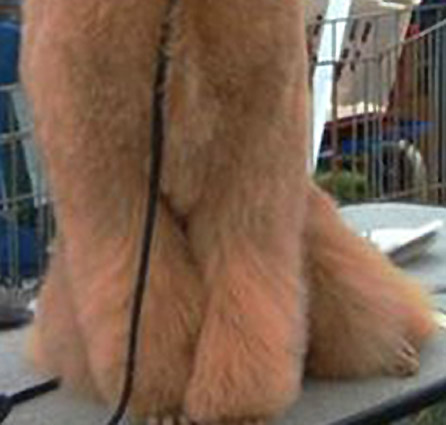 Мы, конечно, знаем, что оттенок окраса на фото зависит от множества причин. И даже два фото одной и той же собаки, сделанные в один и тот же момент но разными фотоаппаратами могут получиться с довольно заметными отличиями. А обсуждаемое нами фото похоже на первый опыт новичка постигающего таинства Фотошопа. И опыт очень неудачный. И уж совсем не хотелось бы думать, что она и в натуре была такого цвета (специально не говорю "окраса"). Тогда размышления были бы совсем о другом. _______________________________________