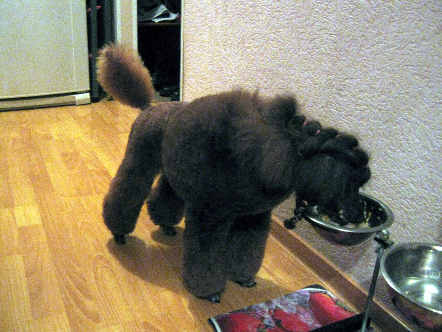 А меня можно поздравить, я подвиг совершила, постригла таки Дашу. Сколько я страдала по этому поводу, сколько собиралась кого-то вызвать, чтоб постригли )))) Не поверите, я не стригла её 4 месяца, ну кроме лап и морды... Это был такой медведь шарообразный. От стола я буквально отползла... Не вспомнила сделать фото до и после. Хорошо Люда напомнила и я сфоткала Дашу только что, пока она ела. Прям гора с плеч :)