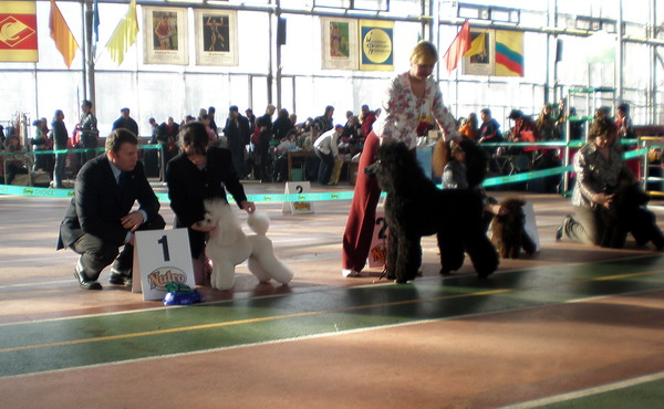Тк на "Кумире" BOB, BIG-1, BIS-2 получил Airyarabeska Highflyer Loving Sky. Описание от Филатовой: "Яркий представитель породы. Радует глаз!". Очень рада за его хозяйку Лену Горшкову, которая сама выставляла его на группе и Бесте. Спасибо всем за поздравления! В свою очередь, поздравляю ВСЕХ-ВСЕХ с победами ! Отдельные поздравления для сыночка Демочки - Солнечный Лев Деми-Нуар Деми-Дье! МОЛОДЦЫ! Ждем на Евразии! И для Airy Arabeska Break All Rules for Cherish, который в Zaragoza (Испания) получил CAC, необходимый для чемпиона Испании, CACIB, BOB и стал лучшим пуделем! Несколько фото с монопородки 03.02.08. BIS. _______________________________________