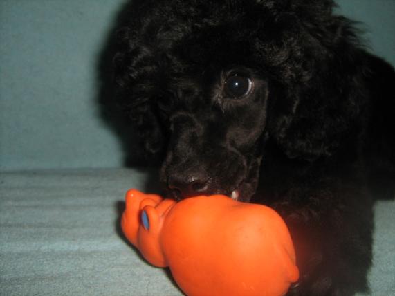 Никогда не умела излагать свои мысли на бумаге, так что не судите строго. В отличии от многих здесь собравшихся, я никогда не мечтала о пуделе. Когда я достигла возраста, когда дети начинают чего-то хотеть, я захотела просто СОБАКУ! Мама никогда не препятствовала мне в желании завести кого-нибудь, так как сама является любителем всякой живности, поэтому вскоре (это было лето 87 года, мне было 5,5 лет) в нашем доме появился щенок той-терьера. Это был мальчик без документов, фенотипически вполне нормальный той, но слегка переросток (рост около 27 см, вес примерно 3,5 кг). Проблем с именем не возникло, щенка назвали Прошка, в честь предыдущего тоя Прошки, который жил у мамы до моего рождения. Знаний, по содержанию и кормлению собак, не было никаких, да и научить было некому. За 9,5 лет которые прожил Прошка у него не было ни одной прививки. В пять месяцев он заболел, по «клинике» это похоже была кишечная форма чумы, а может что еще. Вет.клиник в то время просто не было и чем лечить никто не знал. Помню только, как Проша лежал на кухне под столом на одеяле и выползал только чтобы пописать. Малыш боролся со своим недугом сам и смог его победить. Кормили собаку всем «самым вкусным»: супчик, колбаска, а главный деликатес – куриные косточки. Вопчем, как вспомню, так вздрогну! Если бы я сейчас узнала, что кто-то так кормит моего щенка – убила бы на месте!!!!!!! Прошка был очень самостоятельный парень и гулять он предпочитал сам. Выходил из дома он как приличная собака при полном параде: шлейка, поводок, хозяйка, и спокойно гулял до тех пор пока его кто- или что-нибудь не заинтересует, после этого он буквально за несколько секунд вылезал из шлейки и бежал в нужном ЕМУ направлении. После того, как он несколько раз убегал, а затем через несколько часов или дней приходил домой, домашние решили что никуда он не денется и если ему так нравится, то пусть гуляет один. Это его в конце концов и погубило. Авторитетом для Проши была мама, меня он ни во что не ставил, мог укусить, не пускал в кресло, которое считал своим, воровал и не отдавал игрушки. |