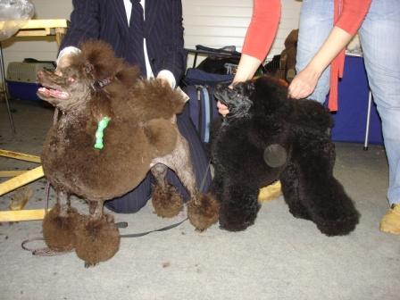 Надюшка!!!!В стойке...Супер!!!! А голова совсем не Фантина!!!???? Или кажется так??? Может потом потянется... Фенечка!!!! Коричневый мальчик, это Ваш??? Очень он мне на Евразии понравился!!! Первый раз его видела...все только слышала раньше!!! Очень...прям...очень!!!И тело, и стиль и рожа!!!! Даже здесь на фото..он мне больше нравится...чем сука черная....у суки кажется много ног...обычно такие годам к двум....входят в форму!!!А так...очень знатные собачки!!!!Молодец Иванова...отличная работа!!!!! Детки загляденье!!!! А... вот насчет..головы Баксовны....по ровнее это в каком месте надо???