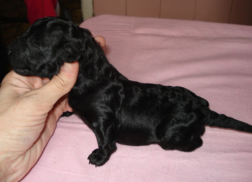 Тань, спасибо! Я ими очень довольна, дело в том, что их мама с белыми кровями и 2 раза до этого рожала мне белых, а здесь три и все черные. Два щенка очень крохотулечные, а на последним фото девочка покрупнее мне кажется еще и с хорошей шерстью будет.