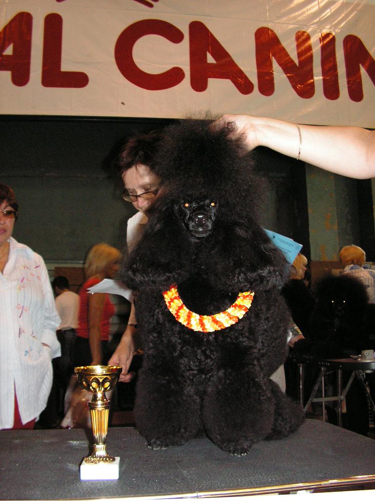 29 июля прошла монопородная выставка пуделей в Екатеринбурге.Заявлено 65 собак, больших 18!Судил Г.Баклушин.Эмерэй Роскошная Цыпочка стала лучшим большим юниором,CW,ЛЮ,ЛПП, обойдя своего отца,BISJ2, и BIS! и это в 10 месяцев при сильнейшей конкуренции.