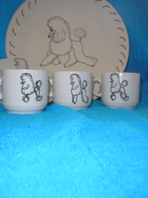 Очень хочется наделать побольше такой "фирменной" пуделиной посуды, а то разные породы есть, а нашей днем с огнем не найдешь. Постараюсь на следующее шоу наделать еще чего-то интересного. А посуда вся полностью функциональна, рисунок не смывается и не стирается, можно даже горячей водой и моющими средствами мыть. _______________________________________