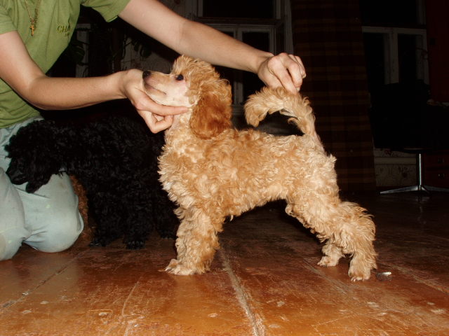 нормальные щенки, от красно-абрикосовой вязки...от абрикосовых вязок помета "А" у нас рождаются как яркие, так и светлые щенки абрикосового окраса. Здесь добавился красный, так как мама красная...Что такого криминального с расщеплением, хоть убей, не понимаю... есть щенок одного окраса (красного) и двух оттенков другого (абрикосового)