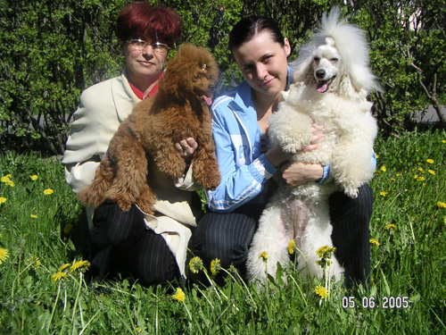 Прекрасная рубрика Давайте знакомиться... Меня зовут Вера, родилась и живу в Москве... Двое мальчишек 18 и 19 лет. Работаю бухгалтером. Собаки были всегда (все дворяне до 1993 г.). Также приносила с улицы и слезно упрашивала оставить малыша. Папа рассказывал, что когда мне было три года, на вопрос: Девочка, кем ты будешь когда вырастешь? ответ последовал: Ветелинаром. У меня еще была игрушка - белая собачка, которую я лечила и зеленкой и йодом, забинтовывала лапки, делала уколы и т.д. Пуделем заболела в мае 1993 года, когда на станции Кучино (рядом с Железнодорожным) при поездке за креслом-кроватью, вместо него купили рыжий комочек - малый пудель Артур Корадо остальной "анамнез" и полный "диагноз" можете прочитать на моем сайте: http://www.geocities.com/goldstandardpoodle/ Единственная добавка к нему - Никуша, дочка моего Тимки. Проказница и хулиганка, разбойница и террористка папы и т.д и т.п. _______________________________________