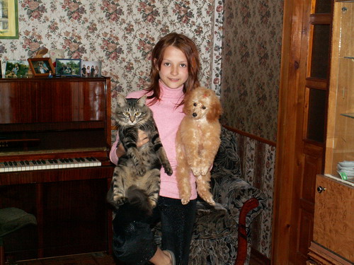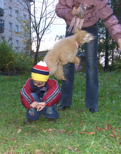 Вспомнила вот про эту фотографию. Шанс Бижу Ева Мэй и Хитрый Бесенок, 2004, Минск. Наверное ulyayar не будет возражать? |