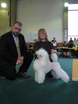мы же не заставляем всех принудительно делать отчеты со всех выставок где они выставлялись... это дело добровольное! а то что результаты экспертизы должны быть тайной? даже в пудель ревю результаты монопородок полностью приводятся, а не только полученные титулы... ещё одно фото ВОВ в классических малых 852 ЛЕНХОЛЛ ДЖЕММИ О ВИТТ с экспертом |