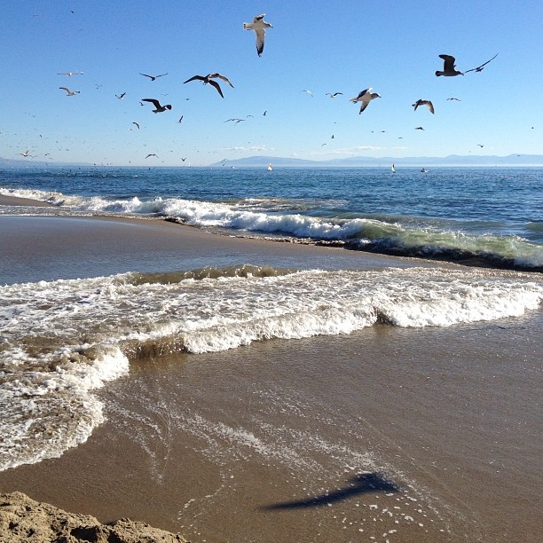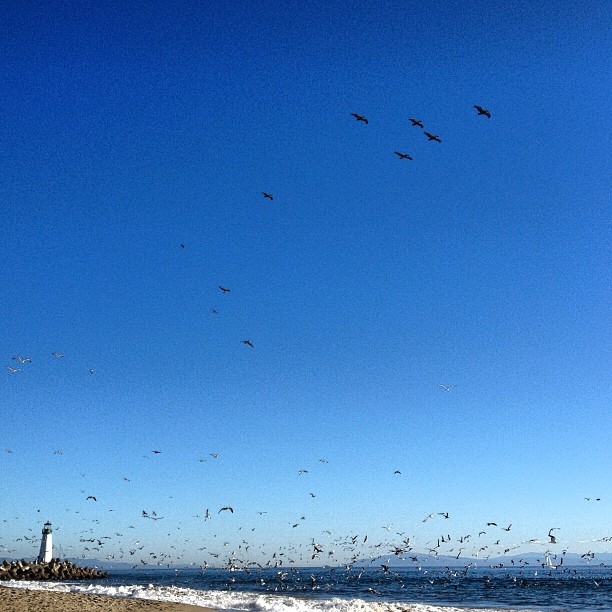 А у нас не летние, но и на зимние очень мало похожи. В заливе Монтеррей в последние пару недель нашествие анчоусов. Чайки сходят с ума, морские львы огромными семьями (до 50 животных) пируют у самого берега, пеликаны на всё это смотрят свысока, но тоже нет-нет да нырнут за рыбкой :) Часам к четырём вечера обожравшиеся чайки уже не могут летать и всей тучей садятся на воду... переваривать свой пикник.