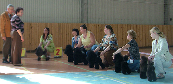 Конкурс производителей. Эксперт, что -то толкует нам про передаваемый тип и удивлен, что эти дети с отличным черным окрасом получены от шоколада.