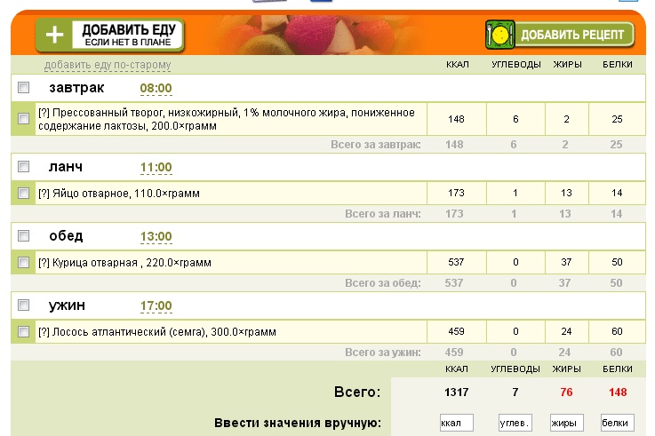 В первый месяц я полностью исключила весь жир, покупала продукты и читала состав и брала только с пониженным содержанием или совсем без жира. Вообще не ела пасту (макаронные изделия, потому что там везде входят яйца). НО! При таком питании организм не получает и полезные жиры необходимые для мышц. В результате через месяц я почуствовала боли в мышцах. Решила, все хватит.... и стала по немножечку добавлять жиры. Но все равно основное мое питание это овощи и фрукты, из мяса только индейка, иногда курица (не жирная часть), рыба. Перестала есть печенья, утром ем сухарики с медом или джемом. Из сладкого черный шоколад. _______________________________________
