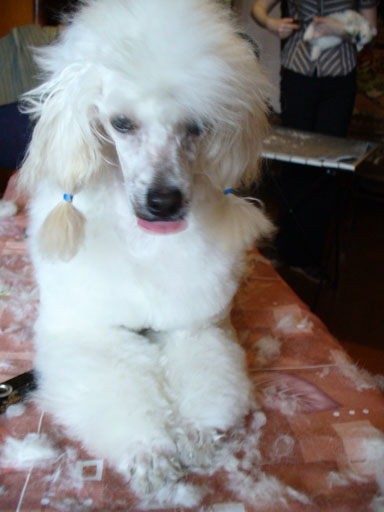 Про шерсть всегда замечания делают. Мне вообще однажды сказали, что у пуделя должна быть круглая голова и не такая морда, а кроме того у них тело длиннее, чем у моей и ноги короче. Так что у меня пусть симпатичный, но метис и чтоб я не обижалась. Я и не обижаюсь. "Метис" у меня действительно симпатичный!!!! А главное, экспертам на выставках нравится. Ни фига эти эксперты в породе не смыслят!!!