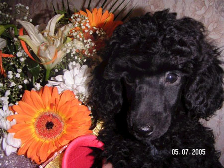 Вятский Сувенир Арлетта сегодня ночью родила одного щеночка. но зато это девочка, черненькая. Отец - Кудос Фантомен. |