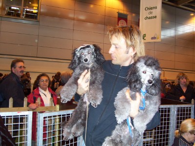 Мужчинка объезжает самые крупные питомники для вязок. Вот с этим юным сыном Брияна французкое разведение связывает большие надежды. Пацан выиграл всё, что можно в щенках и юниорах во Франции, Швейцарии и Бельгии Фотография с громадного Сельскохозяйственного Салона, который проходит раз в год в Париже (именно эту неделю). |