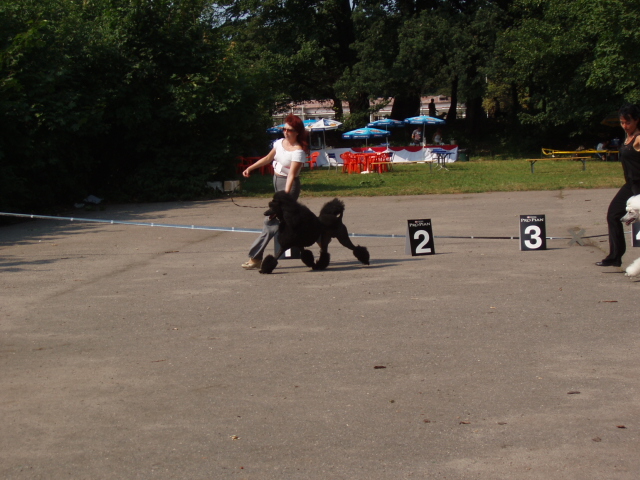В трех словах , что успею(инет может закончится) Выставка проходила на стадионе. Погода была достаточно приятная, пару раз мелкий дождик освежал теплый воздух. Выставку судила Кизина из С.Петербурга. Пд этим экспортом я уже выставляла собак и довольно успешно и имела представление что ей нравится и какие критерии в оценки. Но к сожалению не учла человеческий фактор, с ним даже стандарт породы пудель не может сравниться…….. Ринг больших пуделей смотрелся на одном дыхании. Уж я то не любитель данной разновидности смотрела , как говорят: «Не отойдя от кассы». Большой черный кобель из питомника Блис Трайн -Де Ганд порхал по рингу как махаон. Не менее красив был белый кобель из Польши- Ever Lasting Lave Minarett, Но на фоне Гранда смотрелся тяжелее и загруженее шерстью. В классе юниоров была прекрасная сука из Германии Curonian Spit Cappella. В суках порхающее влетела молодая белая красавица с изумительной черной кожей. Quane White Sabine Ami Ra и по праву получила САС!В. На её фоне проще смотрелась Ginette Commtes vom Swinter Moor ВОВ у черного кобеля!!!!!!!!!!! |