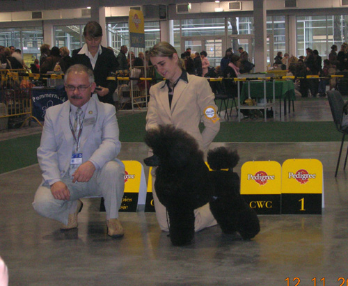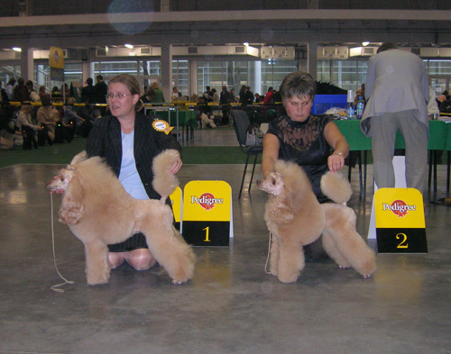 расстановка в классе Чемпионов, выиграла Yellowmellow Illusion, которая и стала Чемпионкой Мира. Ее хозяйка никак не могла поверить в такое счастье и в голос рыдала
