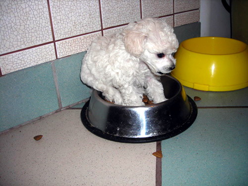 Потешный такой крох!Кормите его до отвала,чтобы больше успел вырасти.Правда моей "добротной" это не помогло дотянуть до нормального тоевского роста,как я не изголялась.Но у нас есть уважительная причина - есть в кого ( папа у нас такой же ). Первый помёт моего питомника ( в количестве 1 штук !) подтвердил истину - каким бы ты не родился - будешь только тем,чем тебе природой назначено!Т.е.,если по генетической разнарядке детёнку выпало быть крохой,тодаже если он родится с весом стандартного пуделя,то всёравно крохой останется.Моя девушка родилась 175 граммов!В это же время у знакомой родились стандартные щенки ( почти все по 200 гр.).И что из этого получилось?...