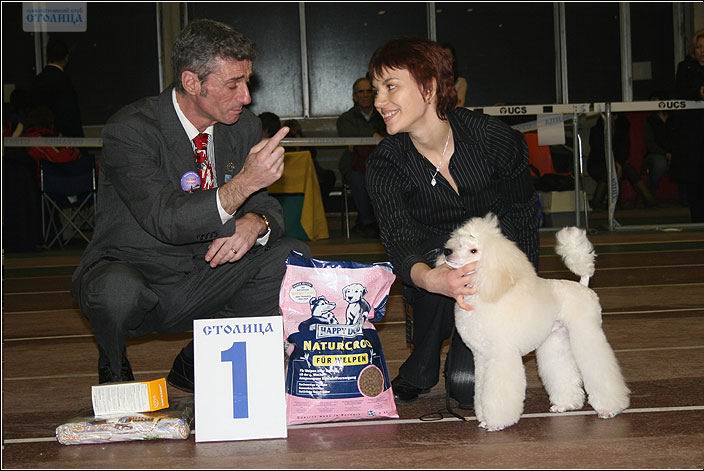 ВСЕХ поздравляю! Лена Старчак, спасибо- прятно. Мы вас тоже поздравляем. На столице сегодня экспертиза была хоть истрогий, но справедливый, прощупывал КАЖДЫЙ суставчик, каждый бугорок а собаке, зубы ну разве что в желудке не смотрел. Поздравляю Дину с Бести с победой в группе! А еще их малышку ( Арварокс Дрим Воркс Энтертеймент с пекрвой выставкой и первым Лучшим щенком! Ещ оочень понравился молодой юниорчик Полины Курбатской Ямит Мускат Паскаль который стал ЛЮ! Ну а моя девушка меня вообще порадовала, умница зайка! ![]() черный пудель и белый НЕ пудель