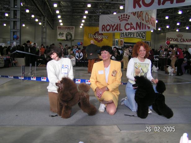 Кошмар и ужас на регистрации в первый день - и великолепное - во второй день. Толкотня и духота возле рингов, грязь - убирать стали практически только к концу дня - и самое ужасное: поведение "отдельных" собаководов, совершенно не гнушающихся "нагадить" у ринга пуделей и быстренько "слинять", неубрав за своим питомцем. Растертое по всему полу ногами - создавала такой "аромат", что "душегубка" по сравнению с этим - была, наверное, раем земным. "Оторвавшись" на карликах, эксперт сменила гнев на милость в малых, а уж стандартам повезло еще больше. Собаки были во многом очень хорошего качества - было очень приятно смотреть на возросший уровень нашего поголовья - хотелось бы побольше, конечно, видеть среди победителей пуделей российского разведения. (Не в обиду "иностранцам" - надеюсь они внесут огромную лепту для улучшения поголовья пуделей России) vera-Tim добавил(а) [date]1109541527[/date]: Эксперты: Сандра Мешфорд (Австралия) - стандартные, малые, карлики; Петру Мунтян - тои _______________________________________