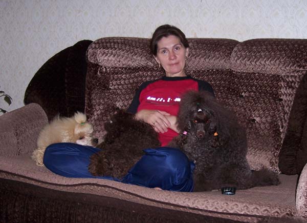 Шурик (Желанный Подарок Небес), его хозяйка Ольга, на руках у Ольги Кнопа(Гламурная Штучка из СД), абрикосовый друг и сожитель Шурика. Это мы в прошлом году гостили у них в Хабаровске