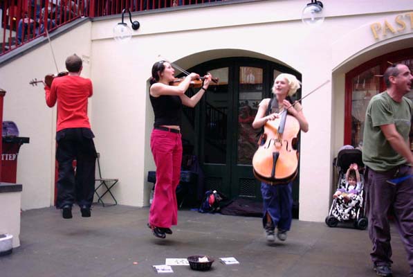 Посылаю фото, сделанные в Лондоне, если точнее - в Ковент-Гардене - театре под открытым небом и центре поп-арта во всех видах. Скрипачей поймала во время прыжка и очень этим горжусь! _______________________________________