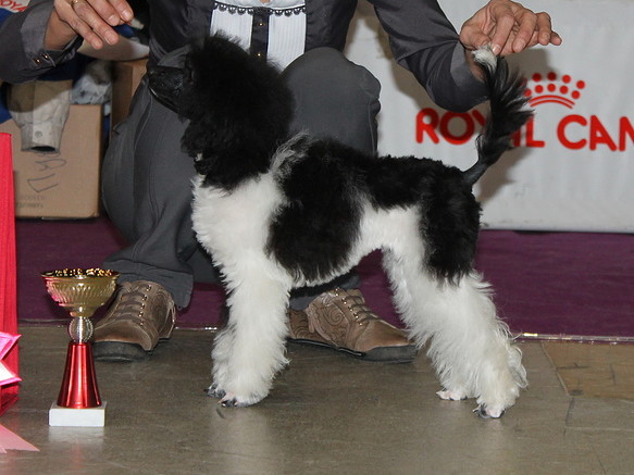 На бэсте я переусердствовала - 28 бэбиков, круг почти сомкнулся. Эксперт долго выбирала, а все это время я Фелю просила стоять. Ну разве так долго может бэбик стоять неподвижно. Эксперт к нам повернулся, а мы головой крутим, устали Потом мне объяснили как правильно надо пока эксперт стоит спиной. В феврале планируем в щенках пробовать, там и приложу опыт в бэсте. Феля по команде стоит, чуть лапки я пальцем поправляю (вручную ставить не могу и не требуется).