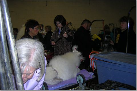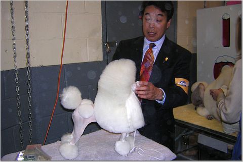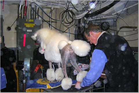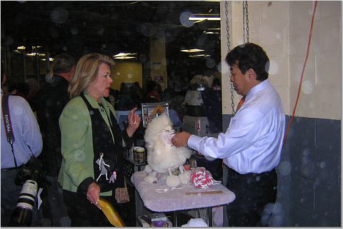 А етот вместо того, чтобы шиньон цеплять, заболтался, а собачке на ринг через полчаса выходить:
