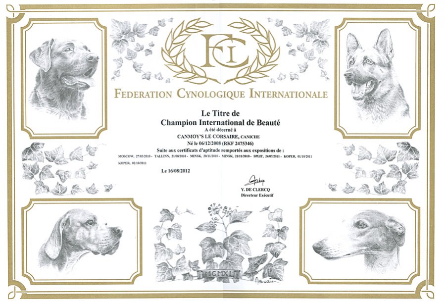 Наш красавец мужчина, импортированный почти 4 года назад из Финляндии Canmoy's Le Corsaire теперь еще и Новый Интернациональный Чемпион; http://jalostus.kennelliitto.fi/frmK...31/09&R=172.21 я этому несказанно рада, потому, что это мой первый Интерчемпион! _______________________________________