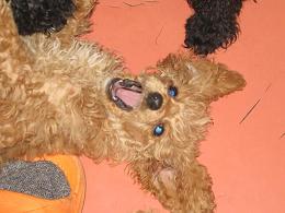 ой, я сначала их вымыла, потом постригла, потом они немного поели, устали. Потом отфоткала всех в стойке, а последняя Сера так устала, что легла и стала зевать, ну мы её фоткать, а к тому времени и остальные притомились, ну мы и их к ней подложили. Поначалу и они покрутились, а потом им похоже понравилось позировать и они в течение нескольких минут лежали и хвостиком виляли.