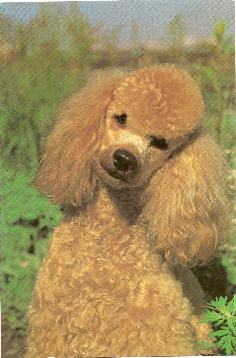 На одной из выставок в Москве осенью прошлого года продавались открытки с абрикосовыми пуделями,они датированы 1989г, фото В.Елисеевой. Одну я взяла себе, а другую у меня выпросила сестра.