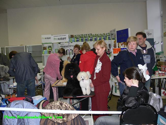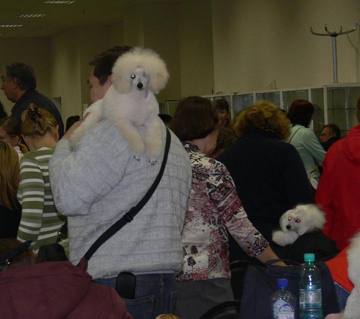 Поздравляю всех победителей выставки "Элита" и Монопородки. Условия на выставке были очень сложные. Верунчику пришлось реально понервничать, отвоёвывая пространство, для того чтобы разместить стол около своего ринга. В этот день на соседнем ринге проходила экспертиза ньюфов. А т.к. они - ньюфы будут, куда крупногабаритные, чем большие пудели, их ореол размещения и подготовки занял почти пловину всего помещения!!! Но нет худа без добра, хорошо то, что ньюфы не "голосистые"!