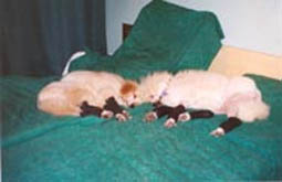 Повешу фотку с заплетенными шубками, так мы сохраняемся между выставками, собственно шубку видать токмо у рыжего хорька