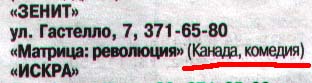 Чиитая одну из весьма уважаемых питерских газет, я совершенно неожиданно наткнулась на весьма любопытный анонс фильма, составляющего репертуар питерского же кинотеатра «Зенит». Настолько любопытный, что я даже не поленилась его отсканировать и представить вниманию уважаемой публики. Вот он: