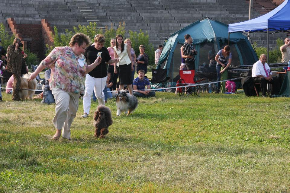 Так как выставка была на достаточно заброшенном стадионе, то мы еще и шашлыки пожарили. В общем отдохнули удачно! Далее были Бесты. Первым в Бест ветеранов пошел наш Евро (Де Империум Аури Зефиро Тропикале) И... выиграл его! _______________________________________