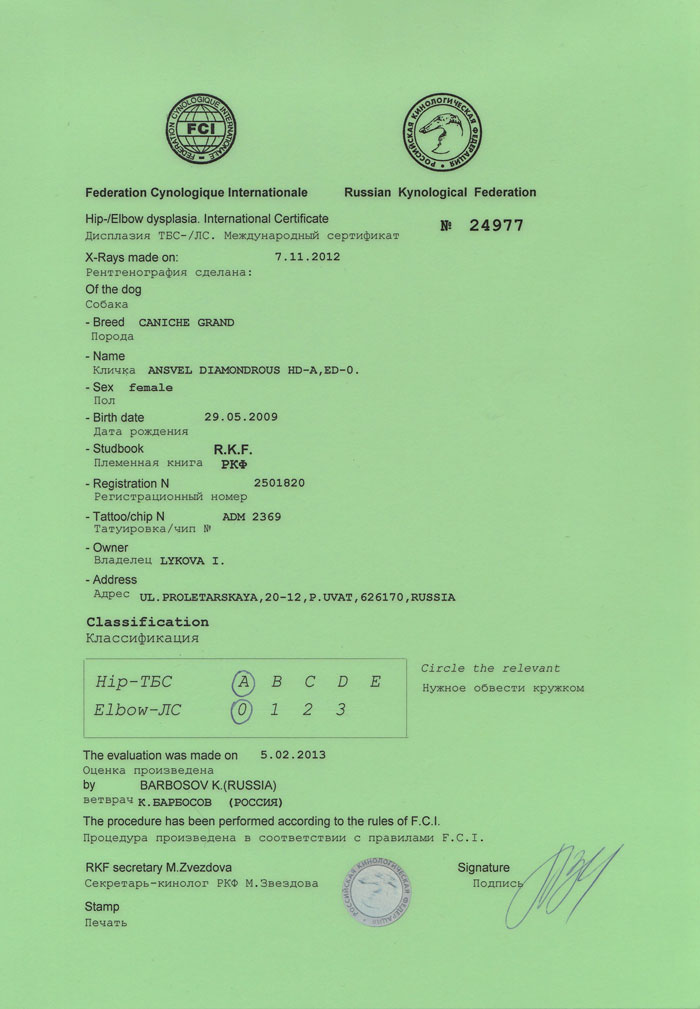 Диплом, видимо, цел. По крайней мере, что-то похожее на него на сайте питомника размещено))) ![]() http://www.vomschlossguet.ch/frameset.htm _______________________________________