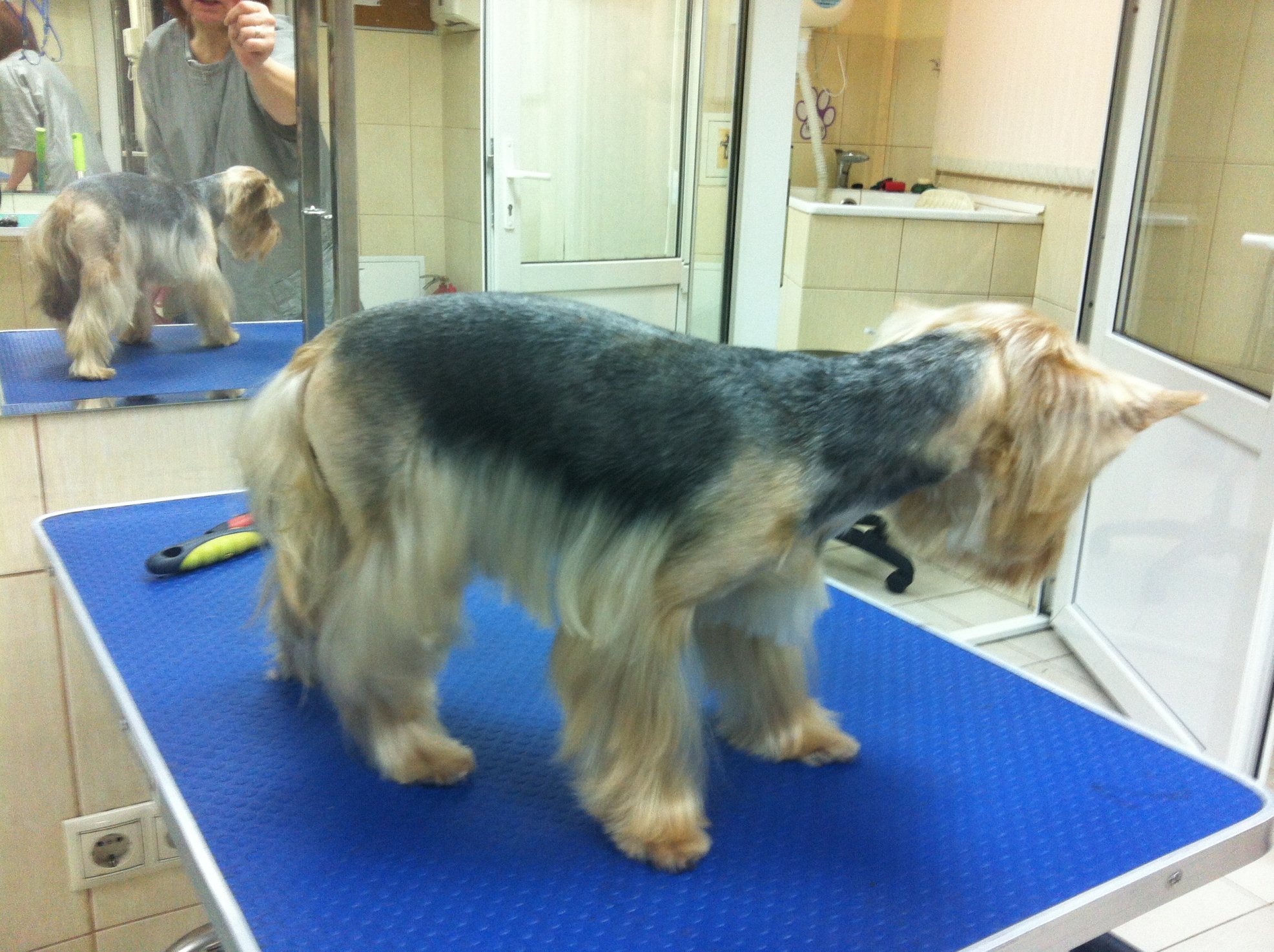 Попробуйте ему лапы забрить не на столе (в стойке) , а держа его на руках. Если что то не понятно или есть вопросы пишите мне на эл.адрес . ПыСы. Йорик красиво получился. |