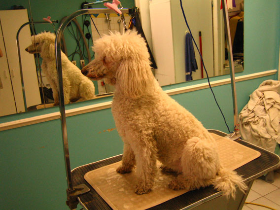 к нам ходит жутко деформированный пудель.До меня её стригли коротко и одной длины,было жутко уродливо.Я стала стараться хоть как то скрасить недостатки.Вот до