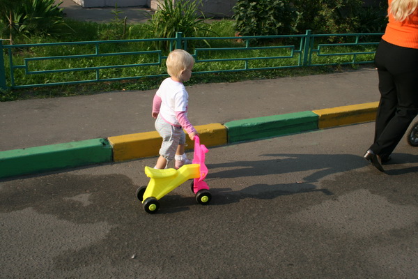 мы вчера просто зашли в десткие магазины и.... в общем было весело))))) А сегодя покупки разбирали))))) Вы здорово погуляли! Молодцы! А на батут я бы и сама залезла, и папа наш не отказался бы))))) И покупки Любаша тоже сама тащит, фиг отнимешь))) А у нас с великом в этом году вот такая история. Пришли в магазин за коляской летней,а ушли с великом, сзади ручка, те он полностью управляем, с удобным сиденьем и песнями смешариков. В общем, вместо коляски) Но через полтора месяца эта ручка в месте крепления к велику просто отвалилась. Сначала нам предложили ее приварить, а потом деньги вернули ве таки. И мы на осень все таки купили коляску-трость. А на следующее лето уже можно будет велик посерьезнее брать, почти гоночный ambercountry, молодец ваша Полина, хорошо управляется! _______________________________________