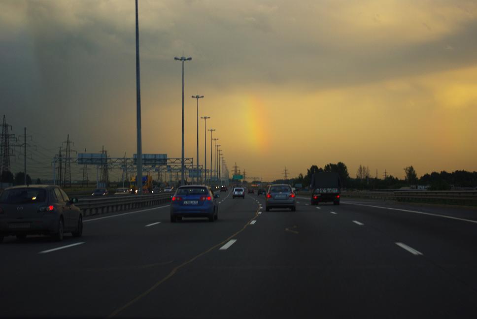 Когда была в Питере, увидела сие впечатляющее явление - практически абсолютно перпендикулярную радугу, и пока ехали со Светой Кизиной по дороге, она, радуга, такой и оставалась.