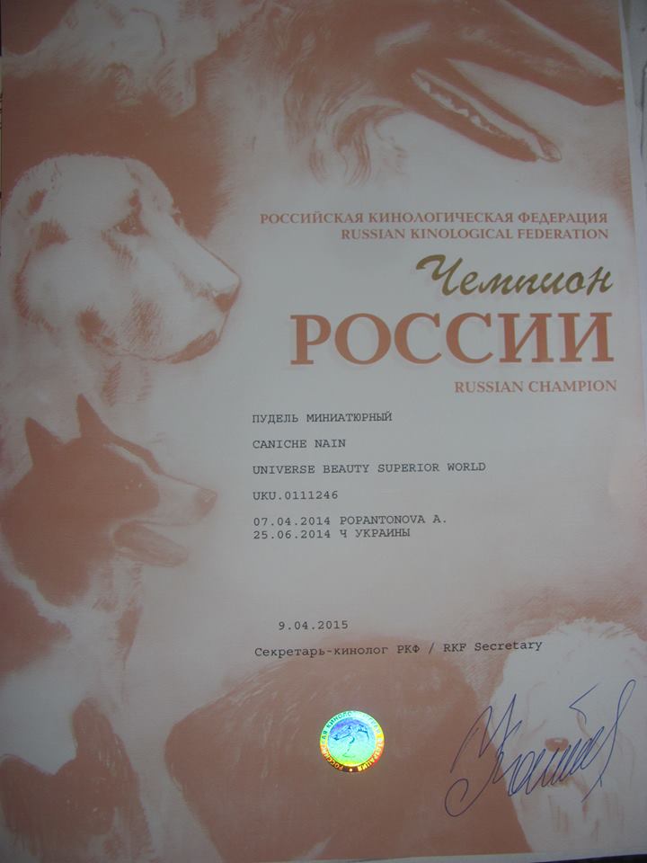 Ура, наконец то я сподобилась заняться оформлением титулов своих девчонок, настоящий Друг Ирочка Вырасткова Ирина Москва помогла мне оформит ЧР и ЧРКФ и вчера титулы были получены на руки