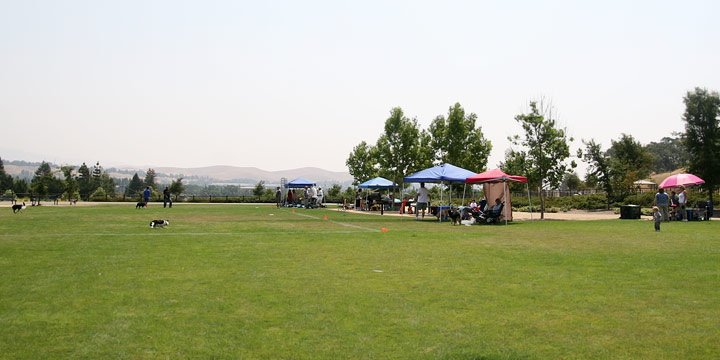 Выклянчив у На Минуту мягкую клеточку, мы и отправились посмотреть на мероприятие, покидать тарелочку и покушать барбекю вместе со всеми. Для организации игрового дня с администрацией парка было согласовано время и арендована просторная лужайка, где в качестве исключения нам было позволено играть с собаками в свободном полете (вообще в парках обычно все строго насчет поводков). Когда я представлялась участникам клуба и сказала, что я из России, двое, Синди и Стив, оживились и сказали, что они знакомы с одной замечательной и очень увлеченной девушкой в России. Коллективной памятью вспомнили, что девушку зовут Катя ;) _______________________________________