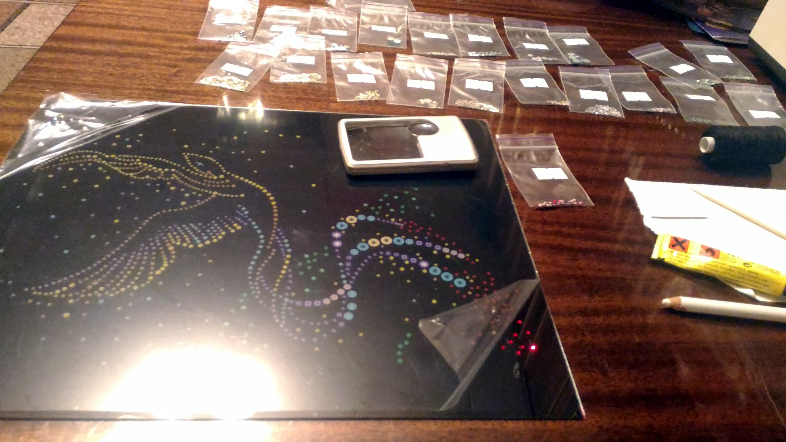 Птица Счастья, с картиной повышенной сложности я не сталкивалась. Мне вполне хватило именно липкого слоя и клей дополнительный пришлось наносить совсем мизер и только в двух местах. А вот стразы я умудрилась рассыпать и потом пришлось собирать их по полу да ещё сортировать нужные цвета..ооо,это был ужас,они же такие мелкие! И я тоже переживала,что их просыпала и,что теперь мне их не хватит...но повезло,их в наборе было много,хватило и еще много осталось:-) На работу с картиной у меня ушло 2 месяца. Зимой возможно ещё с какой-нибудь картиной заморочусь:-) Наташа,а что на твоей картине изображено? И если нет пинцета в наборе,то как ты эти стразы клеишь,просто руками берёшь и в нужное место приклеиваешь?
