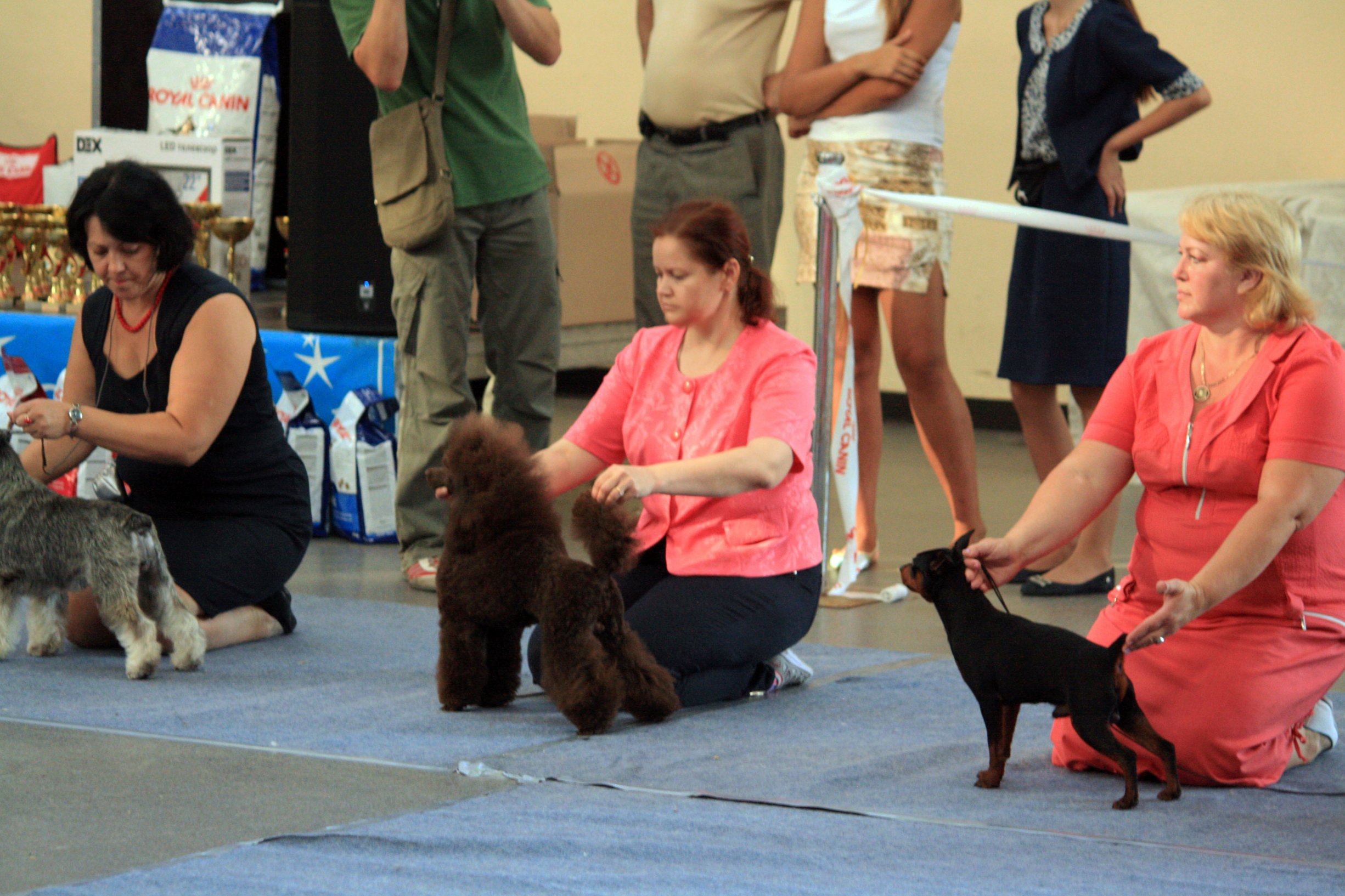 Нет горячей воды, пока греется кастрУлчик для клиента немножко времени ...за чашкой чая))) рассказать о своем веселом времени препровождения)))). Короче мама ребенку решила сделать непонятный какой то подарок на вступление во взрослую жизнь, на выход из щеночков в юниоры. Это я о шоколадах) которым 24.07 исполнилось 9 мес...а 26 я Марка притащила на выставку, потренироваться за дорого)))))))))) (регилась по последней) ...Странная такая мама мало того что мыла дольше обычного, ковырялась у меня в шерсти то ли блох искала, то ли что?, в итоге на моем лице появилась странная улыбка (перевожу собачью мысль))) это о резинках по голове и хребту))) ) так потом еще когда я сииильно не хотел затолкала меня в переноску, спасибо что не в единичку как было удобно ей, а в двойку, где более менее удобно мне))) и кудысь потащила, дооолго я телепался в этой коробке, 4е часа автобусом, потом чем то громыхающим, орущим, свистящем, гудящем, колыхающемся и страшно пугающем (метро) и все это в 42 градуса в тени ... и вот наконец то свежий ветер и свобода...свежий очень условно)))...я иду по неизвестному красивому месту рядом с мамой, много чужих запахов и я все хочу узнать, понюхать и тд и естественно иду на задних))) запахи становились все насыщенней, интересней и родней что ли))) и... ВОТ ОН КАКОЙ СОБАЧИЙ РАЙ!!! собаки-собаки-собаки, большие, маленькие, со слюнями...