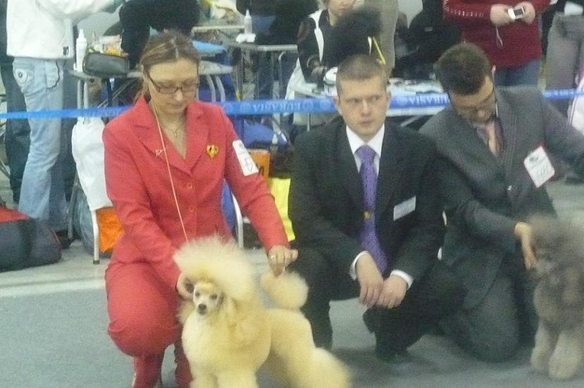 Нина Александровна, какие стенды и флажки! Это из области фантастики! Всё гораздо печальнее ))). Нет ростомера у ринговой бригады во 2 день . Эксперт- г-н Оливейро- очень хотел знать рост малых современного окраса. Прождав ростомер минут 5 , он вынужден была продолжить экспертизу, объяснив участникам, что он более ждать не может... В первый день в малых абрикосовых ринговая бригада не имела ни маленйшего пgедставления, как производится сравнение на RCACIB & BOB (какие собаки должны участвовать). Дипломы не выдавались очень долго. В описании у моей собаки итоговой результат указан неверно: вместо "лучшей суки" в описании написано "лучший кобель". ВОВ вообще не указан в описании. Но по итогам выставки, результат зафиксирован правильно. мне вот это наболело: объяснять ринговой бригаде, что ей нужно делать))))) Незадолго до этого с СПб эксперт во время осмотра на столе меня спрашивала, сравнивать ей малого белого с малой рыжей или нет))). _______________________________________